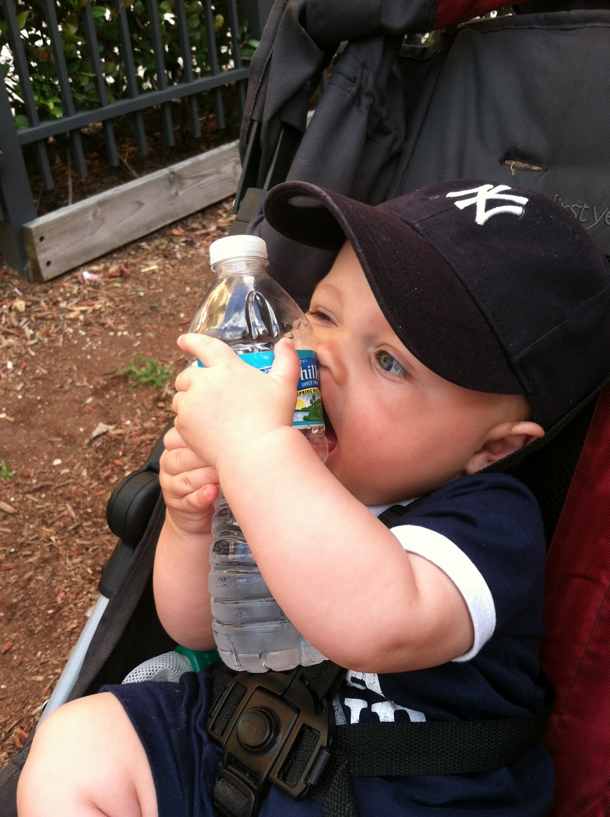 It has been a long time coming but it is finally here! It only took Landon 8 and 1/2 months for his first tooth to break through. He had been chewing on everything and anything. Lately his favorite things include ice, frozen mangoes, and frozen blueberries. I put them in his little teething net and he gets all excited and sucks on the net until there is absolutely nothing left. I tried to get a picture the first day that the tooth broke through but it isn't too obvious. I will be sure to post a picture once it is showing more.